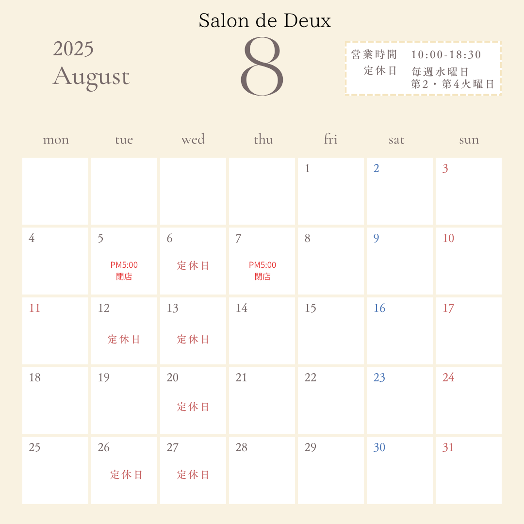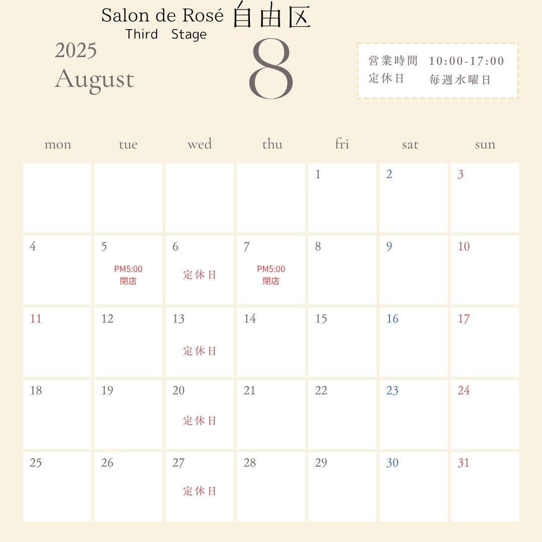 Salon de Deux・自由区、両店とも花笠まつり期間中の5日・7日はPM5:00までの営業になります。