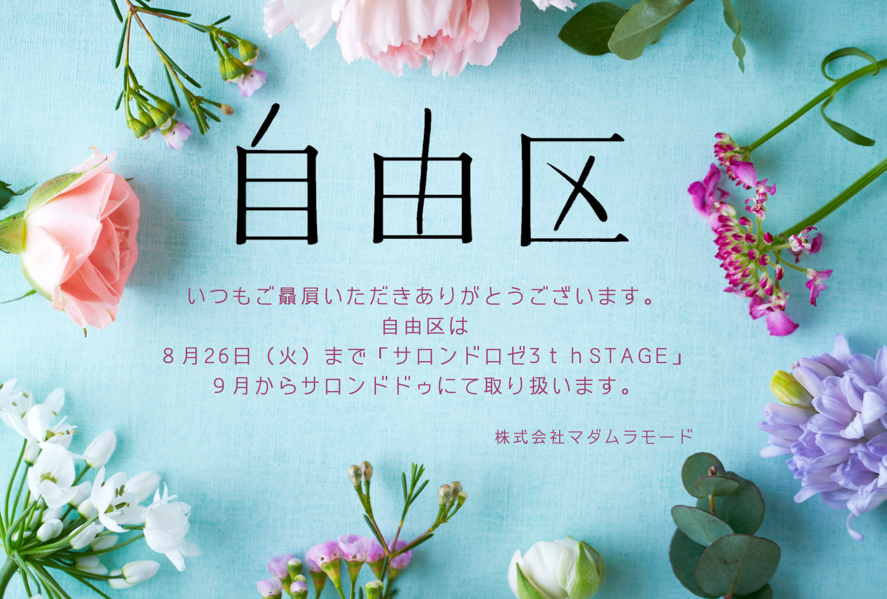 Salon de Deux・自由区、両店とも花笠まつり期間中の5日・7日はPM5:00までの営業になります。